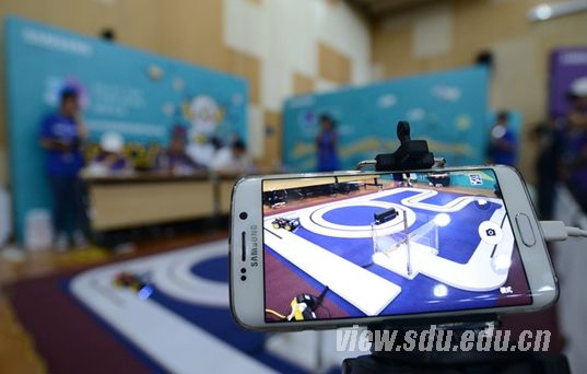 本次比赛中,来自上海、江苏、浙江、安徽、山东、河南六个省市的50支队伍从报名的1046支队伍中脱颖而出,齐聚上海科技馆争夺进入总决赛的10支队伍名额。高手之争,狭路相逢,唯强者可胜。赛场上,“山魂”队、“海韵”队紧张地进行调试。经过激烈的角逐,最后“山魂”队以48秒的成绩取胜,赢得清华大学电子工程系王劲涛副教授在内的多名国内知名专家的一致赞许。赛场上多家媒体云集,中国新闻网、解放日报、文汇报以及新华网等多家知名媒体全程报道比赛。赛后,由于“山魂”队取得不错的战绩,指导教师王鹏伟老师及领队侯旭阳同学也接受了媒体的专访。