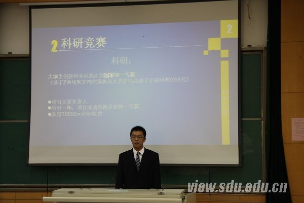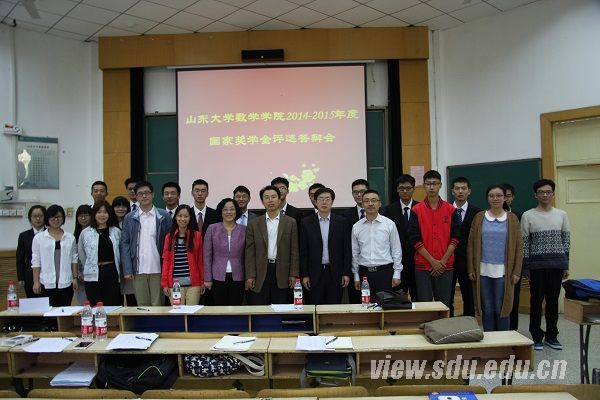 [本站讯]10月11日,数学学院在洪家楼校区举行2014-2015年度国家奖学金评选答辩会。由学院专家教授、辅导员老师和学生代表共同组成的评审小组参加了答辩会,16名符合评选条件的本科生作为候选人进行了答辩,2015级全体新同学观摩了本次答辩会。