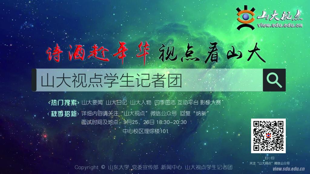 [本站讯]为进一步做好山东大学网络新闻宣传工作,服务学校发展,山大新闻网——山大视点学生记者团现面向全校招聘学生记者、编辑。具体事宜如下: