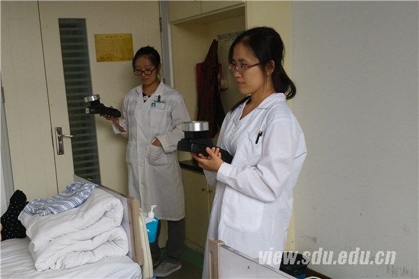 从六月到八月,团队分别对山东大学附属齐鲁医院、山东大学附属济南市中心医院、济南市千佛山医院等三家三甲医院,济南市市立一院、市立五院及电力医院等三家二甲医院,以及山东大学趵突泉校区医院、芙蓉街社区医院及棋盘街社区医院等社区医院进行了事前调查及空气采样,以上九家医院的领导也给予团队充分的帮助,使空气采样工作能够顺利进行。采集的样品统一在学校实验室中培养、观察及计数,数据汇总后进行整理和分析,并对分析结果进行总结。