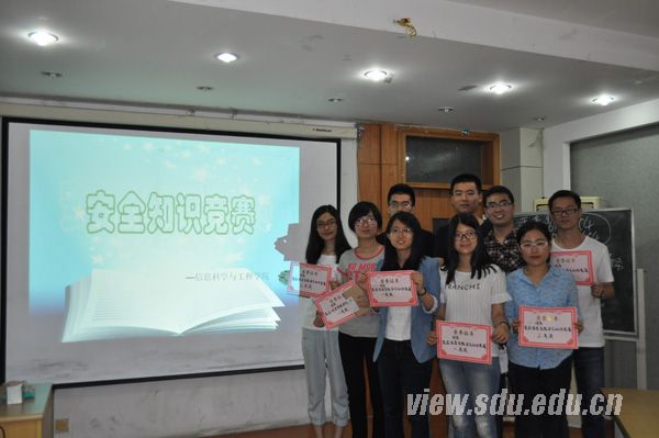 5月13日晚,由信息学院研究生会办公室组织的安全知识竞赛在中心校区举行。本次比赛分为两轮,共有八组参赛队员。第一轮为必答题环节,第二轮为抢答题环节。在比赛期间,各参赛队伍全身心投入到比赛中,观众呼应互动,比赛现场气氛热烈。最终,张笑青、赵冬、武继璇三位同学获得了比赛的冠军。此次安全知识竞赛的举办,进一步普及了安全知识,提高了学生的安全意识。