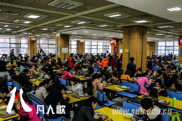 17:30:齐园一层是中心校区就餐人员基本进入饱和阶段。王师傅等工作人员的压力可想而知。这几天正值春雨连绵,王师傅说:“要是在老家干活,这种天气我们就不下地了。但是在食堂工作,就得不论刮风下雨,都要按时上岗,保证学生们的饮食正常。”质朴的话语中,流露出的是深切的责任感。