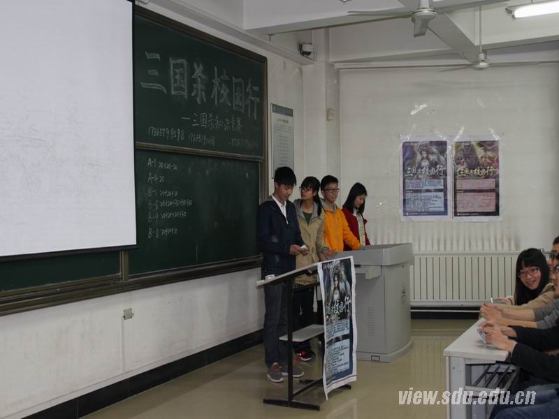 [本站讯]3月29日,“三国杀·校园行”知识竞赛活动在兴隆山校区举行,本次活动由信息科学与工程学院学生会和山大三国杀社团联合举办。