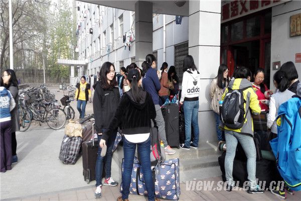 清晨的校园尚未苏醒,宿舍楼下却一片热火朝天。2012级考古班的同学正把收拾好的行李摆放到宿舍楼门外,由于行李多、楼层高,大家一大早就开始忙活起来,有的宿舍更是全员出动帮助舍友把行李搬至楼下。对于前来送行的同学们来说,那些即将开赴实习地点的同学,有的是同一个宿舍的兄弟姐妹,一路走来留下无数美好的回忆;有的则是自己专业的学长学姐,一直给予着自己各种帮助。不同的身份,相同的心情,既有对离别的不舍,更多的是对未来生活的无限期待与祝福。