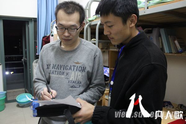 15:30,在网管会信息联络部值班室,网管们正在对报名的学生进行基础面试。尽管前期摆展台的工作已经耗费了大量精力,但网管们面试时的耐心与负责并没有受到影响,他们的笔下不停地记录着对面试者的面试意见。