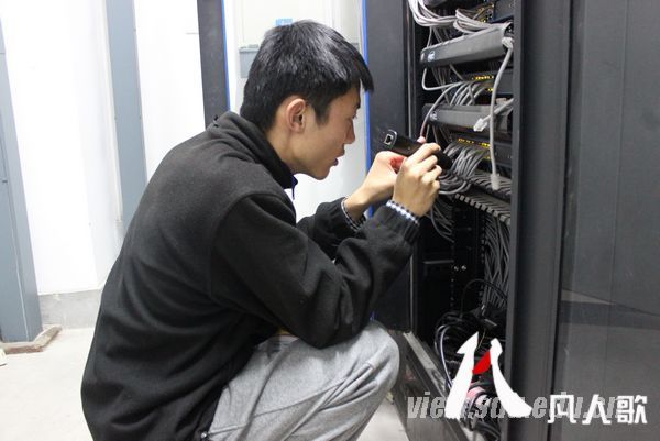 20:20,他又来到13层机房,寻找该寝室在交换机上的对应端口,检查故障。认真、细致、负责的品质在他身上得到了充分的体现。