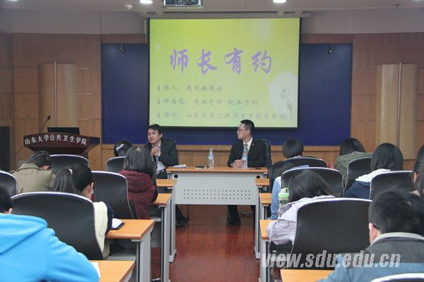 [本站讯]3月29日,公共卫生学院学术部在趵突泉校区举办“师长有约”学术沙龙。本次沙龙邀请公卫学院院长周成超担任主讲人,为同学们进行有关专业方向和就业问题的讲解及指导。各年级多数学生都参与了本次沙龙。