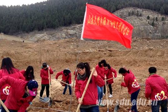 此次植树活动正是山东大学真维斯爱心社对全社会防雾治霾热潮的积极参与,体现出社员强烈的环保意识和社会责任感。在环境日益恶化的今天,“蓝天责任”已经深入到每一位真维斯爱心社成员心中。