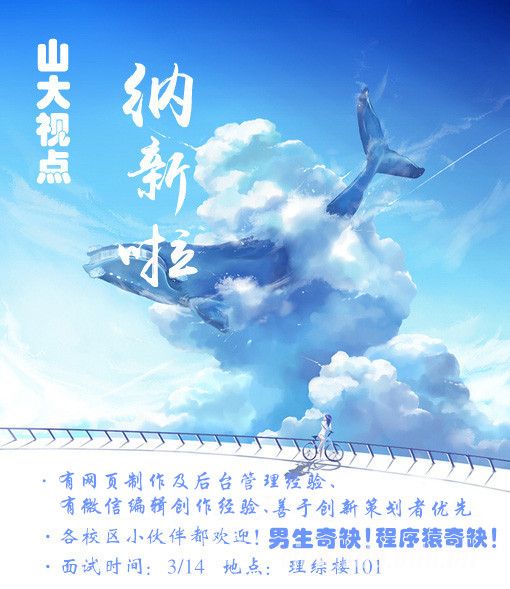 [本站讯]为进一步做好山东大学网络新闻宣传工作,服务学校发展,山大新闻网——山大视点学生记者团现面向全校招聘学生记者、编辑。具体事宜如下: