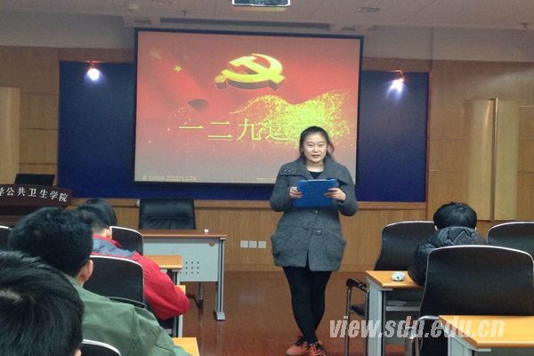 [本站讯]12月9日,山东大学公共卫生学院本科生党支部在趵突泉校区召开党支部学习会议。本次会议的主要参加人员为院团委书记赵婧婧、公卫学院全体本科生党员、预备党员以及重点培养对象,会议专题是传达、学习一二九运动。