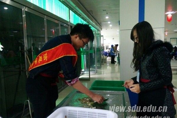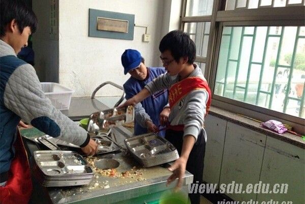 活动结束后,青志协的一位志愿者说:“我们每天都往收残处送盘子,可能会认为收残处的工作很好做,其实不然。自己亲身体会过才感受到工作人员的辛苦。谢谢他们每天的辛勤劳动。同时也希望同学们不要浪费粮食,文明用餐。”