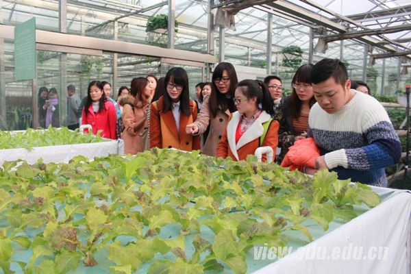 同学们首先参观了山东省农业科学院科技信息研究所。中外学生在“绿色之声”广播直播间参观了信息化综合服务平台,更直观地体验了当代农民如何利用广播、电视、网络等信息平台足不出户地解决农业实际问题。在山东省农作物种资源中心,同学们实地感受了0-4摄氏度低温库环境;在智能化温室,观赏到了运用信息科技手段种植的有机鲜蔬,还品尝了无土栽培的新鲜生菜,亲身体验到“科技,让生活更美好”。