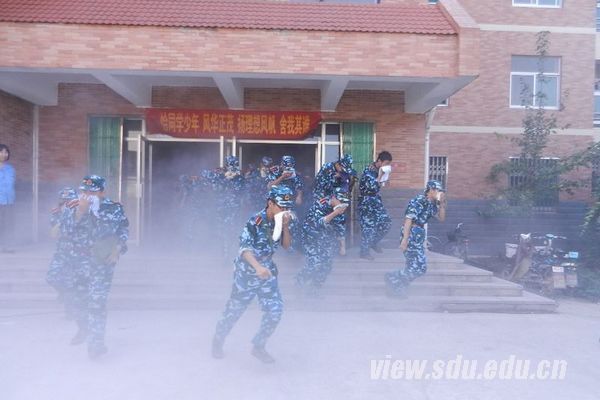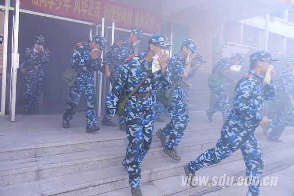 新生分别在3、13、15号楼进行了演练。清晨,女生全部在3号楼集合完毕,辅导员崔剑和王冰洁重申了一遍注意事项后,学生们进入宿舍开始准备湿毛巾等应灾物,并要求关闭好宿舍门窗。一切准备就绪后,警报如期在十分钟后响起,瞬时宿舍浓烟四起,看过了消防宣传片的新生在工作人员的指挥下迅速做好逃离准备,陆续用湿毛巾捂住口鼻顺利逃了出来。男生分成了两批,在不同时段分别完成了演习。同学们按照要求做好了应急措施,态度严肃,遵守秩序,导员对大家的表现很满意。