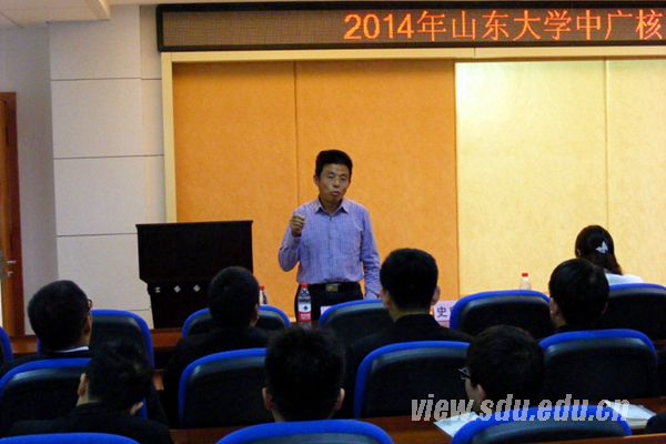 集团运营培训中心陈洁老师表示,联培班同学身上不仅沐浴着企业和学校两种文化,还肩负着这两者的责任,这对同学们是一个提升自我素质的良机。陈洁也对山东大学悠久的历史以及培养的学生质量给予了充分肯定,对联培班的同学们提出了几点要求和希望。她向与会人员简要介绍了中广核这一新能源企业,从多方面阐述了我国核电未来的光明前景。