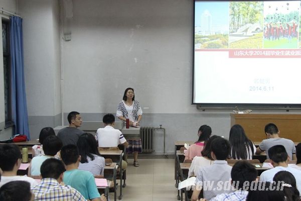 毕业班辅导员郭健男向同学们作了就业派遣工作的具体指导。她首先介绍了学校暂定的各项毕业生手续办理时间,提醒同学们在6月底离校之前,保持手机等联系方式的畅通。随后要求全体毕业生及时登录山东高校毕业生就业信息网,查看个人信息。郭健男按升学、就业和暂未确定工作等三类情况,向大家作了信息维护和档案工作步骤的详解,并要求大家在近期之内完成相应的信息确认和填写工作。考虑到此项工作的繁琐和复杂,郭健男还在讲解之后安排了现场提问和单独咨询环节,用认真负责和耐心细致的工作态度为大家顺利毕业保驾护航。