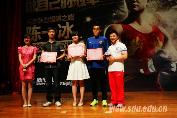 随后,陈一冰为山东大学“三走”系列活动Running Man校园酷跑活动中荣获“校园酷跑大使”称号的三名同学进行了颁奖。公益演讲在热烈的掌声中圆满落幕。