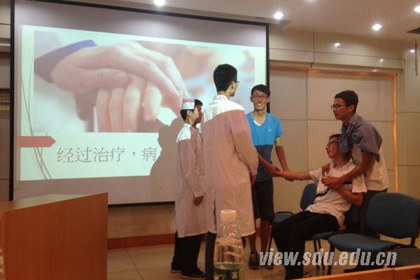 [本站讯]5月26日,山东大学“添翼工程”医患沟通能力培训结课暨“医患同心·关爱互信”医患沟通情景剧比赛在趵突泉校区举行。活动旨在让学生在医患角色扮演中,加深对医患关系的理解,将所学知识与实践更好地结合。
