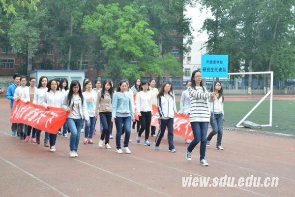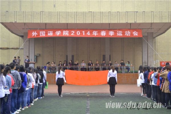 [本站讯]为更好地响应团中央广泛开展大学生“走下网络,走出宿舍,走向操场”主题活动的号召,4月27日外语学院2014年春季运动会在洪家楼校区举行。外语学院党委书记郑倩,副院长李建刚,党委副书记高弟,办公室主任周俊基,各系主任、负责人和各年级辅导员老师出席了开幕式,并由高弟致开幕辞。