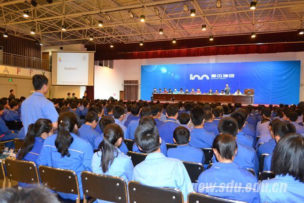 豪迈科技职业中专副校长张海燕,豪迈集团发展规划部部长管娜、副部长杜恩宏、主任赵鹏,山东大学林明星教授参加了交流会。交流会上,张海燕对山东大学实习团队的到来表示欢迎,并指出本次交流会是让豪迈科技职业中专的学员们了解大学和大学生活的良好途径,也是双方加强合作交流的重要形式,希望这样的活动可以经常举办;林明星教授向学员们详细的介绍了机械工程学院的发展历史、学科设置、教学科研情况,简要介绍了机械工程学院的特色研究方向,希望双方进一步加强技术交流与合作;机械学院14名学生,以问答的形式与豪迈科技职业中专的学员们进行深入的交流。
