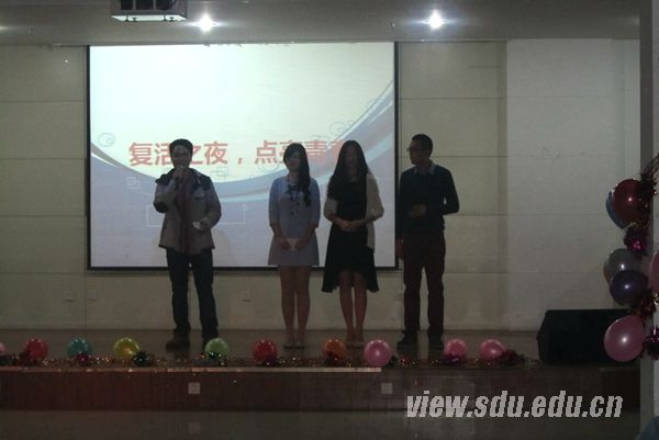 [本站讯]4月20日晚,“复活之夜,点亮青春”研究生联谊会在中心校区举行。此次联谊会由数学学院团委和数学学院研究生会组织举办,2013级研究生王金山、郭哲琦、白凯敏、芦希担纲主持,来自数学学院与其他学院的近200名研究生参加联谊会。