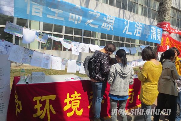 3月21日至23日集中展开世界水日活动展示,分校内宣传和校外宣传两部分。校内宣传中,志愿者们分别在中心校区和洪家楼校区开展节水宣传。活动中,志愿者们变废为宝,身着由废旧报纸、塑料制品等手工制作的环保服装进行展示。环保涂鸦作品也各具特色,同学们纷纷称赞,为自己中意的作品投下支持的一票。此外,同学们对LED电视的节水视频播放感到新奇,并从视频和有奖问答等环节中收获了不少日常的节水小窍门。校外宣传中,学院联合历下区水利局,在解放阁举办了主题为“节水护泉迎水日,清清泉水韵我心”的节水护泉宣传活动。志愿者们借助展板,为市民讲解有关世界水日的知识,让市民们了解设立“世界水日”的真正目的。展台上,志愿者们利用精心制作的小模型,现场演示了造成水资源污染的原因,把原本复杂的水污染过程变得通俗易懂。同时,活动现场进行了一些节水创意制作展示,如节水花盆等,赢得了很多市民的称赞。环保服装秀独具特色,也吸引了很多市民前来观看。此外,有奖问答和环保涂鸦处也是热闹非凡,活动以精美明信片和绿丝带作为奖品,吸引了更多人的加入。市民们则纷纷在纸上写下节水宣传标语并进行签名活动以表明大家参与节水爱水行动的决心。