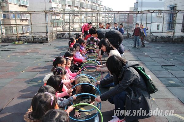 中韩志愿者混编组队担任幼儿园九个班的课外活动助教,与小朋友们一起体验了丰富多彩又带着“韩范儿”的幼儿互动学习和游戏。负责大班的志愿者提前准备好了各式各样的手工材料,与小朋友们一起动手做了小桔灯、纸杯小白兔等手工艺品。看着形状各异的小动物从自己手中做出,孩子们都开心不已。韩国留学生在中班开设了“趣味韩语小课堂”,小朋友不仅学会了简单的韩语问候语,还唱起了欢快的韩语歌谣《三只小熊》,孩子们开心的说:“我回家要唱给妈妈听!”小班的志愿者助教带领孩子们走出教室,在室外玩起了“丢手绢”、“开火车”等童年经典小游戏,欢乐的笑声弥漫在整个校园,也勾起了志愿者们美好的童年回忆。活动最后,志愿者们感慨道:“每个孩子都是可爱的天使,幼儿园的老师也很辛苦,向他们致敬!”
