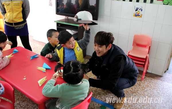 [本站讯]3月11日,国际教育学院学生会与韩国留学生会共同举办的“韩汉小课堂,童心大梦想”志愿服务活动在洪楼社区幼儿园展开。本次志愿服务得到中韩四十多名志愿者的积极响应,活动反响热烈。