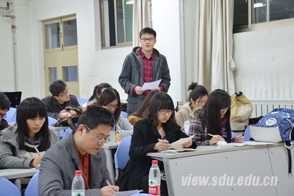 答辩会伊始,学院团委书记魏鲁鸿就答辩的相关内容及注意事项进行了简短的发言。2011级1班的团支书就大三上学期的工作经验,取得的成效和不足之处进行的深刻的总结。其中,她关于“班内一席谈”的想法吸引在场各位的关注。随后,各班级的团支书依次发表了精彩的总结。11级6班的团支书薛冰新颖的团会模式,如为雅安祈福,情人坡下的中国梦等给在场团支书们很多关于团会开展方式的新思路;2012级2班的团支书袁佩然就带动学习氛围,提升团会参与度发表了自己的观点,令在场的团支书受益良多,开拓了开展团工作的思路。整个答辩产生了思维的碰撞,各班团支书都在认真聆听,记录开展团工作的创意例子,力争在接下来的学生工作中能有更有新意的方式来提升同学建设优秀团支部的积极性和主人翁意识。最后,魏鲁鸿就一学年来的总结成果给出了简短的评价,并就团委展开的其他活动做了详细的说明与安排,他希望各班团支书带头参加团支部活动,建设优秀团支部。