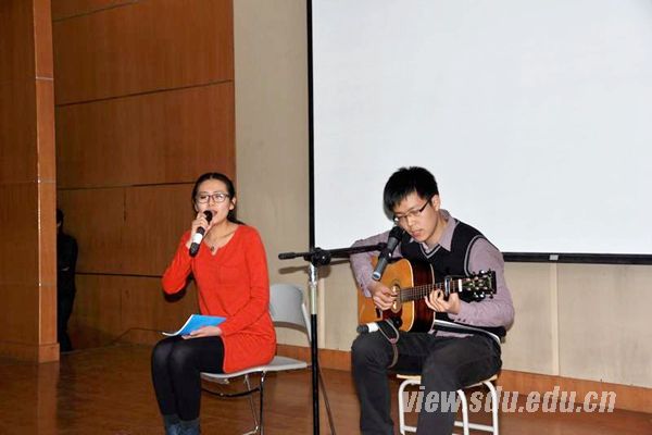 晚会分为文艺表演和交友联谊两部分。文艺节目精彩纷呈,歌曲演唱大放异彩,二胡双人奏——歌曲串烧中默契的配合赢得阵阵掌声。另外,活动邀请到本科生元旦晚会精品节目舞蹈《寻找山医神猫》及小品《翻过一山来山医》成员强势加入,引爆了晚会气氛。“六分钟交友”和“我想对你说”为同学们提供了进一步拉近距离的平台。同学们情绪高涨,欢声笑语溢满会场。互动游戏“爱就一起走”、“爱就向前冲”、“心有灵吸”、“爱就勇敢抢”激发了同学们的兴趣与激情,参与游戏的同学不仅收获到了精美礼品,还增进同学之间的了解与交流。
