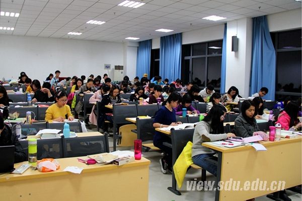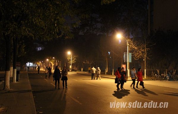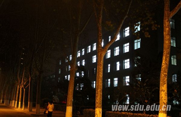 晚上9:20,公教楼。整幢楼的灯火通明,暖暖的灯光透过窗子,温暖着济南的冬夜。那一扇扇发亮的窗后,有多少专注于背公式、解习题的身影,有多少正在考研路上执著前进的身姿。