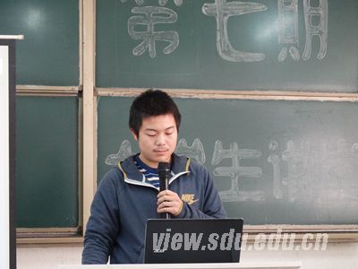 土木一班刘泽勇担当主讲人,他的演说主题为“让人生把握在我们自己手中”。刘泽勇以自己的人生观“一直在追逐的路上”为开场白,引出“人生规划”的话题。他指出,只有确立了人生规划,人生才能紧握在自己手中。该观点赢得了同学们的一致赞同。接下来,通过播放视频的形式,他列举了许多人物身处困境却依旧自强不息的例子,并以此告诉大家,自身意志可以克服艰苦的条件。对于大学生的人生规划问题,刘泽勇从各个方面展开演说,条分缕析。在他看来,要进行自我规划,首先要意识到人生规划的重要性。其次需要做到的,是对自己有充足的信心并具有坚定的决心。同时,一个优秀的大学生必须具备强大的自我管理能力,这就要求同学们用强大的内心力量作支撑,做出明智的选择。不管何时何地,不能放弃努力追求。刘泽勇的讲说生动而富有感染力,同学们聚精会神地聆听。讲到精彩处,同学们点头表示赞同,还不时爆发出热烈的掌声。本次讲堂活动互动良好、气氛融洽,对于刘泽勇提出的问题,大家都积极配合、认真思考。