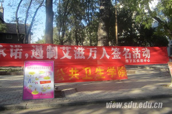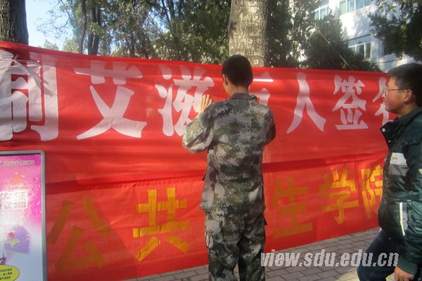 [本站讯]12月1日上午,公共卫生学院在山东大学趵突泉校区举行“遏制艾滋,万人签名”活动。此次活动由公卫学院学生会社会实践部主办,旨在在“世界艾滋病防治日”到来之际让更多的人了解并关注艾滋病。