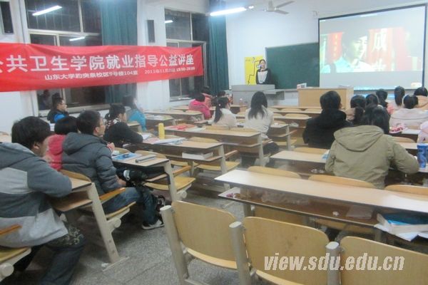 [本站讯]11月25日公共卫生学院就业指导公益讲座在趵突泉校区举办。金域检验人力资源部经理李超担任主讲人,公卫学院辅导员班梦姣与公卫学院部分本科生、研究生参加了本次活动。