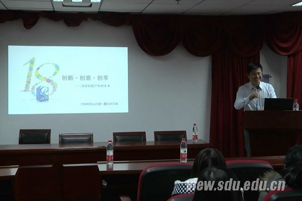 [本站讯]11月23日,历史文化学院文化产业管理专业邀请了山东齐鲁电视台企划部主任封万超在中心校区知新楼为同学们作讲座。讲座主题为“创新·创意·创想——电视产业的未来”。