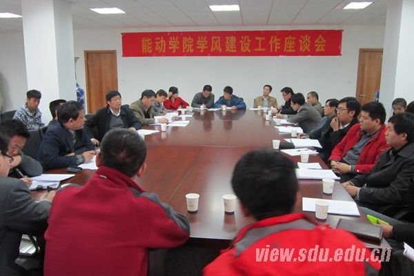 [本站讯]11月15日,能动学院在千佛山校区东配楼成功举办了学风建设工作座谈会,针对学院学风建设展开了民主大讨论。院长田茂诚、党委书记史良君出席会议并讲话,教学副院长辛公明、教学秘书、各年级辅导员、班主任、学生代表参加了座谈会。党委副书记滕玉军主持会议。