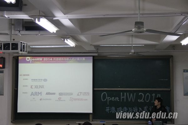 此次比赛由中国电子学会主办,美国赛灵思公司承办,于2013年10月21日在官网正式启动。本次比赛将充分继承发扬“开源”精神,参赛作品将作为公共资源供他人下载学习。会上,彭彦宇以OpenHW2012为例详细介绍了其宗旨、流程以及评选标准。比赛秉着“推动开放源码硬件社区的发展,促进FPGA在嵌入式领域的应用”的宗旨,在综合各方面的意见以及选手各个环节的表现进行全面的审核后,对参赛选手提交的设计方案进行严格的审查,筛选出合理且有创意的项目后由主办方免费提供板卡等器材。此外,彭彦宇还介绍了几种板卡,提供了几个设计方向,重点提到了图像处理、数据加密等方面。他又以智能小车为例,分析了它的自动化控制原理和硬件驱动,让同学们对设计有了更深入的了解。在随后的观众提问环节里,同学们踊跃发言,互相交流,现场气氛热烈。