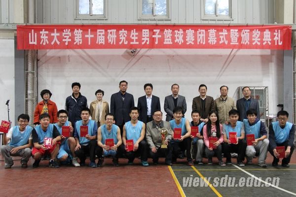 [本站讯]11月8日下午,山东大学第十届研究生男子篮球赛经过近一个月50多场激烈的比赛,在中心校区击剑馆落下帷幕。研究生院、党委研究生工作部及各参赛单位相关负责人出席了比赛闭幕式暨颁奖仪式。