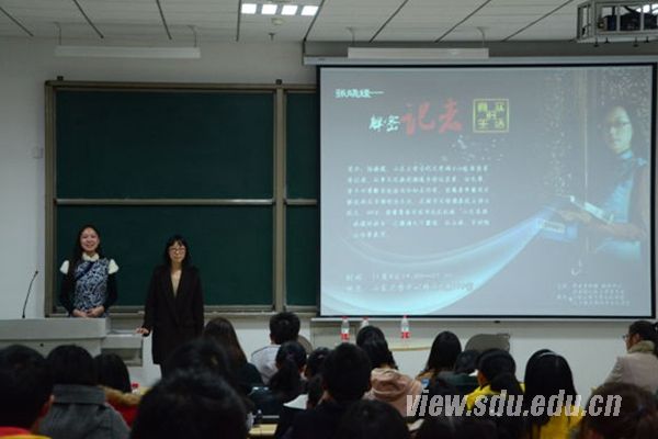 [本站讯]11月8日,记者节系列活动之一——“解密记者真实的生活”专题讲座在山东大学中心校区知新楼举办。讲座邀请了山东商报首席记者、山东大学古代文学硕士张晓媛担任主讲,山东大学大学生记者团、山大视点网站学生记者团的全体成员及校内外新闻爱好者参加了此次讲座。