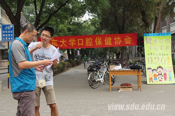 [本站讯]9月20日,在第二十五个世界爱牙日之际,山东大学口腔医学院在趵突泉校区举办爱牙日宣传活动。本次活动由山东大学口腔医学保健协会和口腔医学院社团部联合主办。旨在向山大学生宣传口腔强保健知识,并养成良好的口腔卫生习惯。