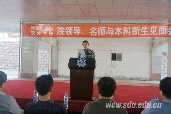 下午2点半,活动正式开始,首先软件学院辅导员孙朋朋为同学们介绍学院领导及老师们,为活动致辞,寄语同学们要时刻充满希望。接下来,2013级软件2班的王梦菡同学代表新生发言,她表示,作为新生,应该全面计划每一天的任务,为自己树立一个一个的小目标,要相互尊重相互学习,培养山东大学学子应有的优良品格。接着,优秀教师代表彭京亮上台发言,他在发言中表示,新生们刚进入大学校园,多了很多自由,但是一定不能忘记要努力奋斗。彭京亮还就大学与中学的课程差异进行了详细的解释,希望同学们要在大学学习的过程中把握好自己前进的方向。最后发言的是领导代表陈宝权,陈宝权就当今世界软件领域的发展为同学们做了一个形象的描述,以印度软件发展为例,阐述了软件开发在社会发展方面的重要作用。陈宝权发言后,许多同学纷纷举手提出自己的疑问。一位同学问道,作为软件工程师如何提高自己的职业生命,让软件开发工作不成为一份只能在年轻时从事的工作。对此,陈宝权给出了自己的意见,他说,在国外的许多企业,软件工程师往往是工作时间越长越有价值,因为在工作中积累的丰富经验,是帮助公司创造价值的无价之宝。还有一位同学提问道,软件行业是否不适合女生从事。就这个问题,陈宝权解释道,软件行业是一个与很多学科有关联的一个学科,女生可以从事艺术类软件的开发,这也是现今非常热门的一个行业。陈宝权精彩的讲解赢得了全场雷鸣般的掌声。
