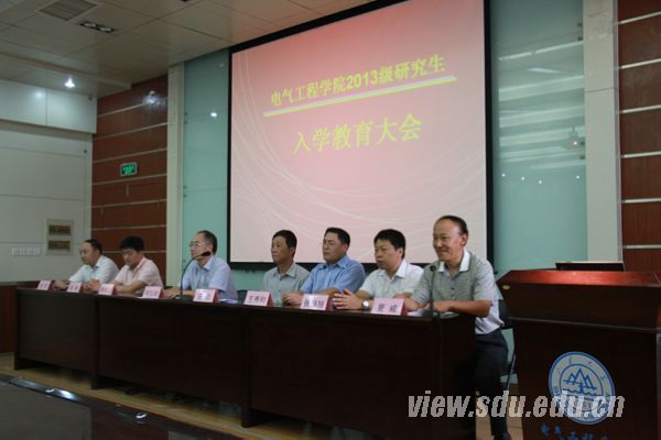 [本站讯]9月8日下午,电气学院2013级研究生入学教育动员大会在千佛山举行。院党委书记王钧,院长刘玉田,党委副书记夏威、赵罡,副院长韩学山、王秀和、张恒旭、高峰,各研究所所长、研公办老师和全体2013级研究生参加会议,夏威主持会议。