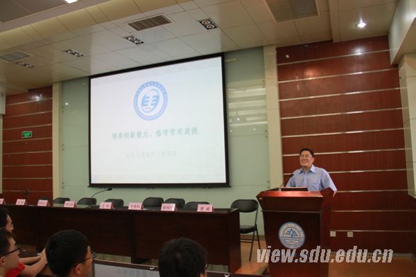 随后,王秀和为大家做了题为“培养创新能力,恪守学术道德”的报告。王院长首先就学院发展改革、学科建设的基本情况、研究生培养的特点、本科到研究生的转变、研究生的培养环节、创新能力的培养、学术不良表现等方面展开了详尽讲解,同时劝诫大家务必恪守学术道德规范,防微杜渐。