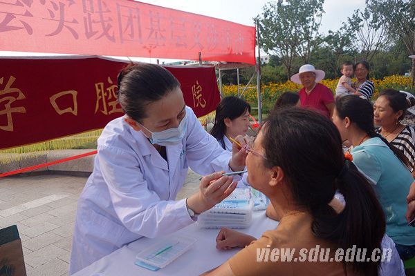 山东省整体口腔健康及医疗状况相对落后,缺少相关的流行病学调查及分析,缺乏相应的改善口腔治疗及保健方面的政策措施,居民的口腔保健的意识也相对薄弱。徐欣表示,口腔医学院将按照深化医药卫生体制改革“保基本、强基层、建机制”的要求,一如既往地积极参与城乡对口帮扶和“千名专家援基层、万名主治进乡村”活动,并派出最精干的专家团队来进行帮扶和义诊活动,真正为口腔医疗服务能力的提升做出应用的贡献。当地市民闻讯后,纷纷有秩序的排队等候检查。专家们不畏酷暑,认真的为群众进行口腔检查,解答他们关于口腔方面的健康疑问,并为他们提供诊疗意见,同时还发放了宣传材料。
