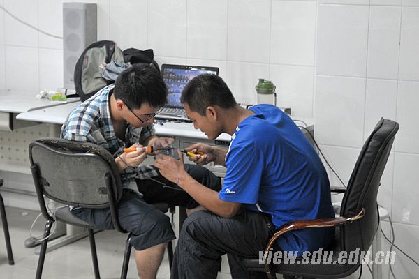 暑期学校期间,工程训练中心的领导与指导教师工作在第一线,为参训学生提供各种便利条件与指导。工程训练中心创新实验室全天候开放。中心校区、软件园校区、千佛山校区的物理、信息、软件、计算机、控制、电气、机械等学院四十余名同学路途较远,交通不便,为节约同学宝贵时间,工程训练中心专门安排两间大办公室供男女学生住宿。学生积极动手进行实践练习,学习热情高涨。经过近期的高强度集中训练,学生的动手实践能力有所提高,团队间的配合也更加默契。