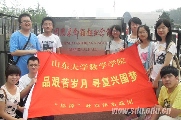 [本站讯]为了踏寻中国梦的历史足迹,激发和培养大学生的爱国主义热情和民族精神,为实现中国梦而努力奋斗,数学学院“思源”社会实践团队在数学学院党委副书记李勇的指导和带领下,利用暑假时间,在济南、天津等地进行了以“抚今追昔,品艰苦岁月忆苦思甜,寻复兴国梦”为主题的社会调研。