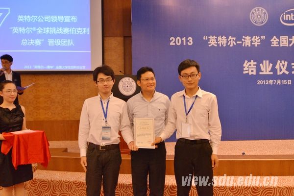 [本站讯]7月16日,2013 “英特尔-清华”全国大学生创新创业营在清华大学落下帷幕。由山东大学科技创新中心主任张熙指导,孙华霄、赵春雨组成的星核创业团队获2013英特尔全球挑战赛中国区选拔赛特等奖,成功入围2013英特尔全球挑战赛伯克利总决赛,团队将携手清华大学、四川大学两只创业队伍于10月出征在美国加州大学伯克利分校举行的2013年英特尔®全球挑战赛——伯克利*总决赛,代表中国队与来自全球的同龄人在世界顶级舞台上互动、分享并同台竞技,角逐最高为50,000美元的创业奖金。