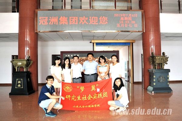 “梦翼”社会实践团旨在深入了解中小企业对外贸易发展的基本情况,并调研企业对外语人才的需求状况和外贸从业人员工作现状。在为期一个多月的准备过程中,实践团队与聊城冠县各企业积极联系,并针对企业外贸发展和人才需求设计制作调查问卷、撰写详尽的访谈提纲。7月1日,实践团队启程奔赴聊城冠县。在为期一周的调研活动中,实践团队先后走访了山东冠洲股份有限公司、山东省冠星纺织集团有限公司、山东中天复合材料有限公司、山东众冠钢板有限公司等多家企业,与各企业外贸部门负责人进行了座谈,并请其填写调查问卷以作补充调研。在谈话中,各负责人向实践团队展示了中小企业对外贸易的蓬勃发展和盎然生机,也吐露了中小企业因地理位置不佳而在人才吸收方面遇到的尴尬,同时提醒有意从事外贸工作的外语专业同学努力扩充自己在对外贸易方面的专业知识储备,并真诚告诫即将踏入社会的同学戒骄戒躁、放低姿态、用心观察、主动学习,在艰苦中成长,在沟通中提升。在接下来的工作总结阶段,“梦翼”社会实践团将对座谈录音材料和回收的调查问卷进行进一步的整理和分析,并咨询专家意见,一方面形成对中小企业外贸发展的总体认识,深入剖析其发展现状、优势经验、劣势不足及发展前景,另一方面总结企业负责人对外语专业学生的意见和建议,最终将以调研报告的形式详尽展现。