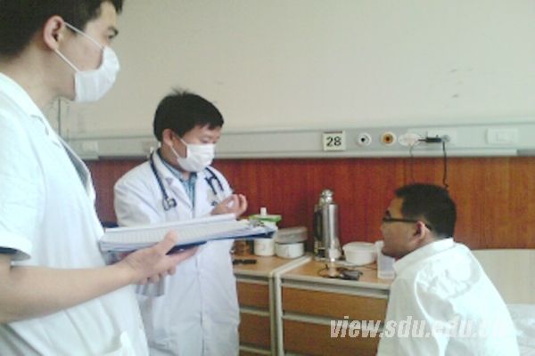 早上7时,队员们准时在中心校区北门集合。不久,队伍到达齐鲁医院华美楼干部保健科。队员们换好白大褂,按院方的要求划分为三个小分队,分别前往干部保健科内分泌科室、神经内科科室及消化科室。由周鹏、赵宇和孙云起组成的第三小分队准时参加保健神经内科的例行会议,各位教授、医师对部分患者的具体情况进行了会诊和讨论。队员们统一着白大褂、消毒口罩,分别随各个科室的教授进行查房。查房过程中,各位教授不时讲解,详细耐心地给队员们解释了各种药物的不良反应,加深了队员们对相关专业知识的了解。同时,医生们对病人耐心的关怀和认真的态度也使队员们颇有感触。查房结束后,各分队返回到各自科室与医师及教授进行交流与讨论。下午,队员们在医生办公室学习并体验了病历的阅读及电子版病历的输出。其中,第二分队跟随医生体验了对病人的胃肠镜检查。下午5时,三个小分队队员返校并进行会议小结。