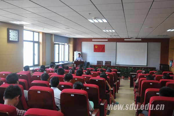 在雄壮的国际歌歌声中宣誓活动正式开始,2009级本科生李敏担任领誓,全体宣誓人员面向党旗,举起右手,握拳庄严宣誓。铿锵有力的誓言让新党员们深刻感受到了党员的责任、使命与义务。学院研究生主席贺洋代表老党员发言。他说,要做一名合格的党员,就要努力学习专业知识,不断提升专业素养,炼就过硬的专业技能;就要积极关注社会热点问题,注重社会实践,提升用专业知识解决实际问题的能力;就要关注学校学院发展处处发挥模范带头作用;就要怀揣青春梦想,开拓进取,奋发有为,在学习和实践中实现经院梦、山大梦、中国梦。学院2010级本科生杨申代表入党积极分子发言。他说,作为入党积极分子,他会再接再厉、严于律己、锐意进取,用自身的成长历程、精神追求、模范行动为同学们作好表率,争取早日成为一名光荣而伟大的共产党员。