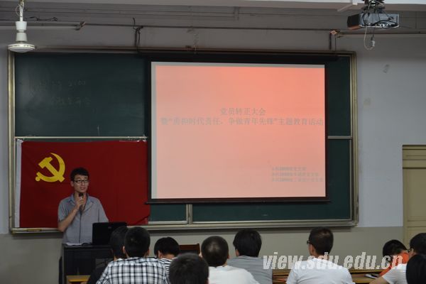 [本站讯]6月6日晚,机械工程学院本科2009级学生党支部在千佛山校区召开了毕业班最后一批预备党员转正大会。会议由2009级工业设计党支部书记刘鹏主持,各党支部成员参加会议。